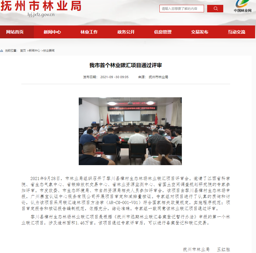 远期林业碳汇项目——黎川县樟村生态林场碳汇造林项目