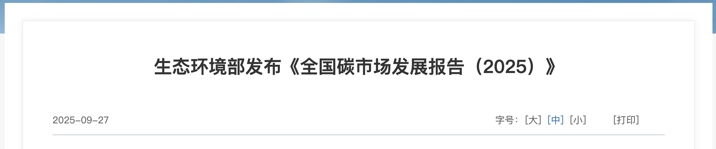 为促进社会各界更好了解全国碳市场发展情况,生态环境部组织编制了《全国碳市场发展报告(2025)》,并于9月24日在“2025年中国碳市场大会”上正式发布。